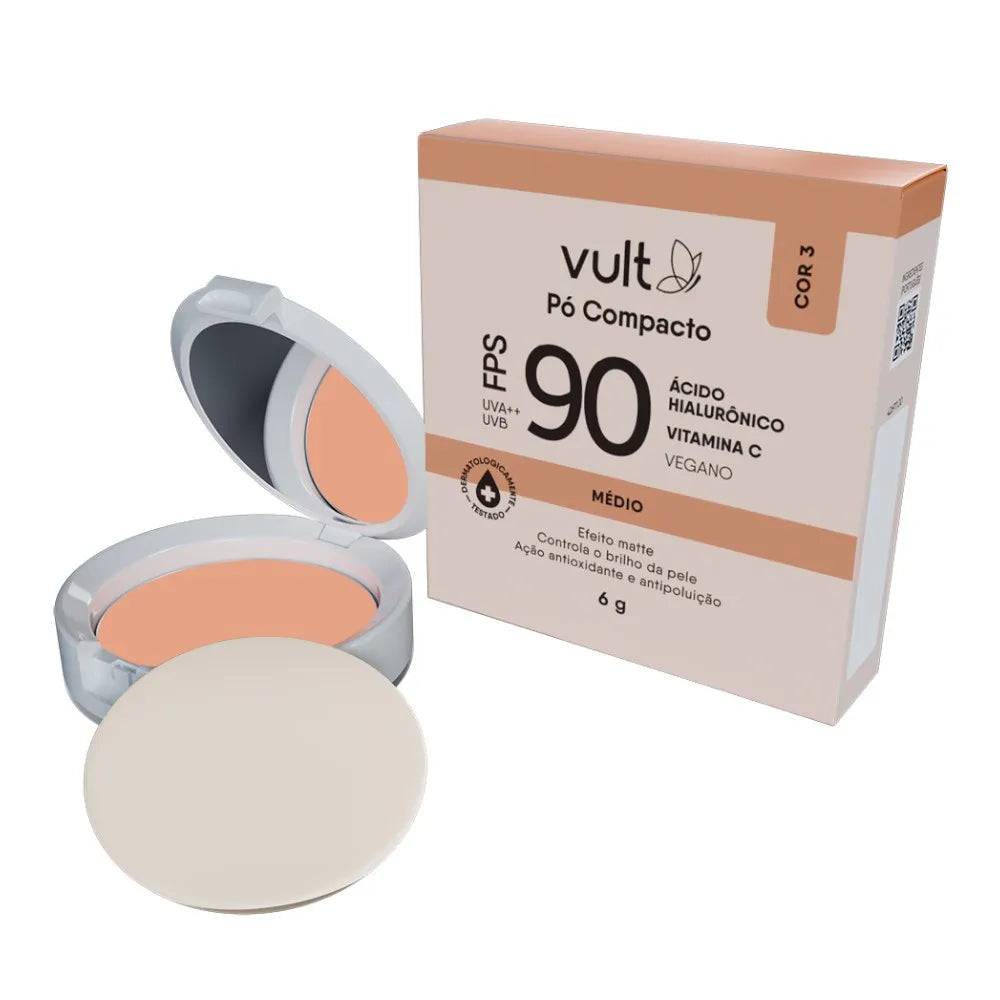 Pó Compacto Facial Vult FPS90 - Médio oferece a cobertura ideal para peles morenas e bronzeadas, com um acabamento natural e protegido. Com FPS90, esse pó compacto ajuda a prevenir os danos causados pela exposição ao sol, ao mesmo tempo em que proporciona uma textura suave e aveludada. Perfeito para controlar a oleosidade e disfarçar imperfeições, esse pó compacto é a escolha perfeita para quem deseja um visual impecável e protegido, sem pesar.